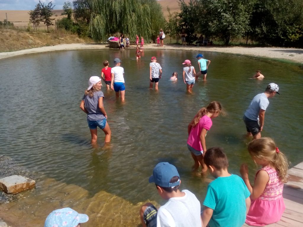 Naší pobytovou základnou se staly opět prostory Českého zahrádkářského svazu v Pitíně, kde se mohli táborníci do sytosti vyhrát, měli prostor tvořit, soutěžit, malovat i psát. Další základnou se stal OÚ Pitín, kde se děti ráno scházely a odpoledne byly předány rodičům. Ke stravování jsme mohli využívat místní KD, kam nám byly přiváženy obědy, které nám připravil pan kuchař Vrba. Opět jsme chodili do přírody, poznávali místní krajinu, zajímavá místa- Podhradíští, Hradíšťko, řeku, studánky, květiny, stromy. Povídali jsme si o historii Slovanů, osídlení Pitína, postavili hradiště, chlapci si malovali slovanské štíty, vyrobili oštěp, děvčata postavila jednoduché příbytky, vytvářela šperky z kůže a z kamínků. Využili jsme krásného počasí a 2x jsme si zadováděli v bazénu na Nivě. Ve středu jsme uskutečnili výlet vlakem a autobusem do Modré u Starého Města. Archeoskanzen a Živá voda byly úžasné. Děti se volně pohybovaly po areálu, měly úkoly zjišťovat co nejvíce informací o Slovanech a doplňovat si vědomosti o naší historii. Naše poznávací výprava splnila očekávání a přispěla k rozšíření zájmu o životě Slovanů. Ve čtvrtek nás seznámili hasiči s jejich zázemím a nepostradatelnou technikou, a k radosti dětí je odvezli hasičským autem. Odpoledne za námi přišli myslivci a povídali si s dětmi o lese, péči o zvěř, lovu, myslivosti. Bylo to velmi zajímavé a poučné. V pátek jsme měli ukončení našeho letního táborového dovádění. Tentokráte to nebyl úplně obyčejný táborák -chlapci postavili pec, na které jsme si opekli chlebové placky a pro zlepšení chuti i klobásky. Děti byly vyhodnoceny za své celotýdenní snažení drobnými dárečky. Děkuji všem, kteří opakovaně přispěli k uskutečnění letního tábora, k tomu, aby děti mohly prožít krásný prázdninový týden, plný nových obohacujících zážitků, vztahů, kamarádství, nenudění se.