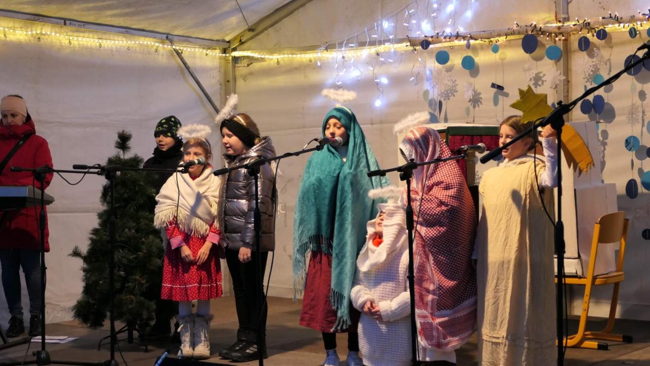 Moc děkujeme tatkéž těm, kteří program připravili, organizovali kulturní část i občerstvení, prodávali na jarmarku i vystupovali. A už se těšíme na zítřejší zpívání před školou. Třeba si můžeme dát ještě jednou i tu společnou písničku „Vánoce přijdou“, když to tak ladilo a na začátku to všichni nestihli.