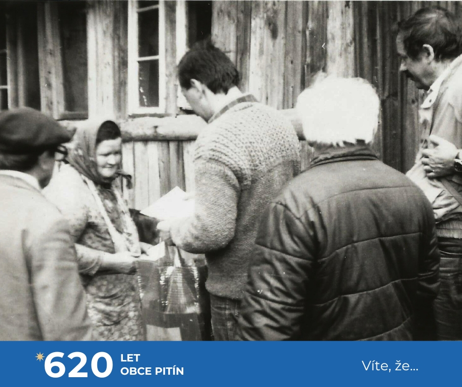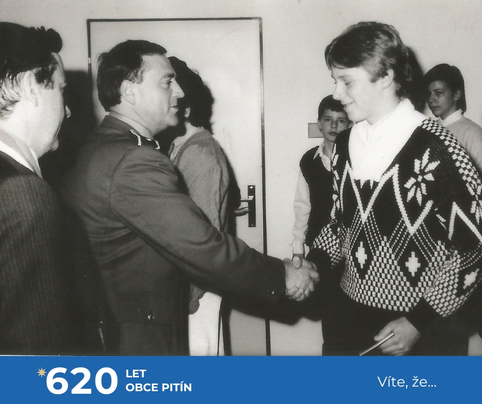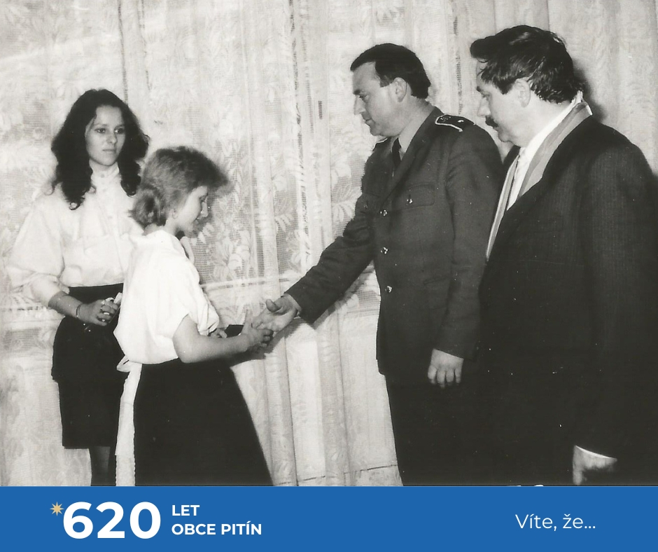 My se nejprve vrátíme do doby, kdy občanské průkazy vydávaly Okresní správy Sboru národní bezpečnosti a tehdejším patnáctiletým pak byly slavnostně předávány na obecních či městských národních výborech, později úřadech. Ne jinak tomu bylo i v našem Pitíně, kdy předávání organizoval místní Sbor pro občanské záležitosti (SPOZ) za přítomnosti předsedy národního výboru a zástupce Sboru národní bezpečnosti. První fotografií si připomeňme multifunkční místnost bývalého národního výboru a později OÚ, která sloužila jako obřadní síň a zároveň jako místní lidová knihovna. Při slavnostních událostech se zatažením závěsu z knihovny stala obřadní síň a bylo to!