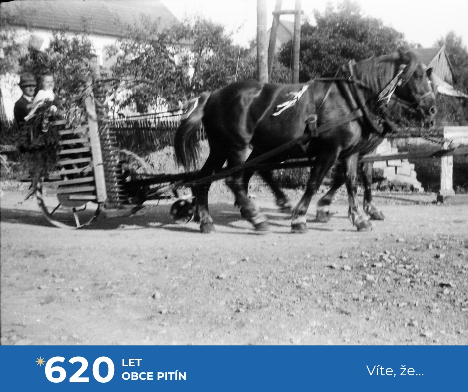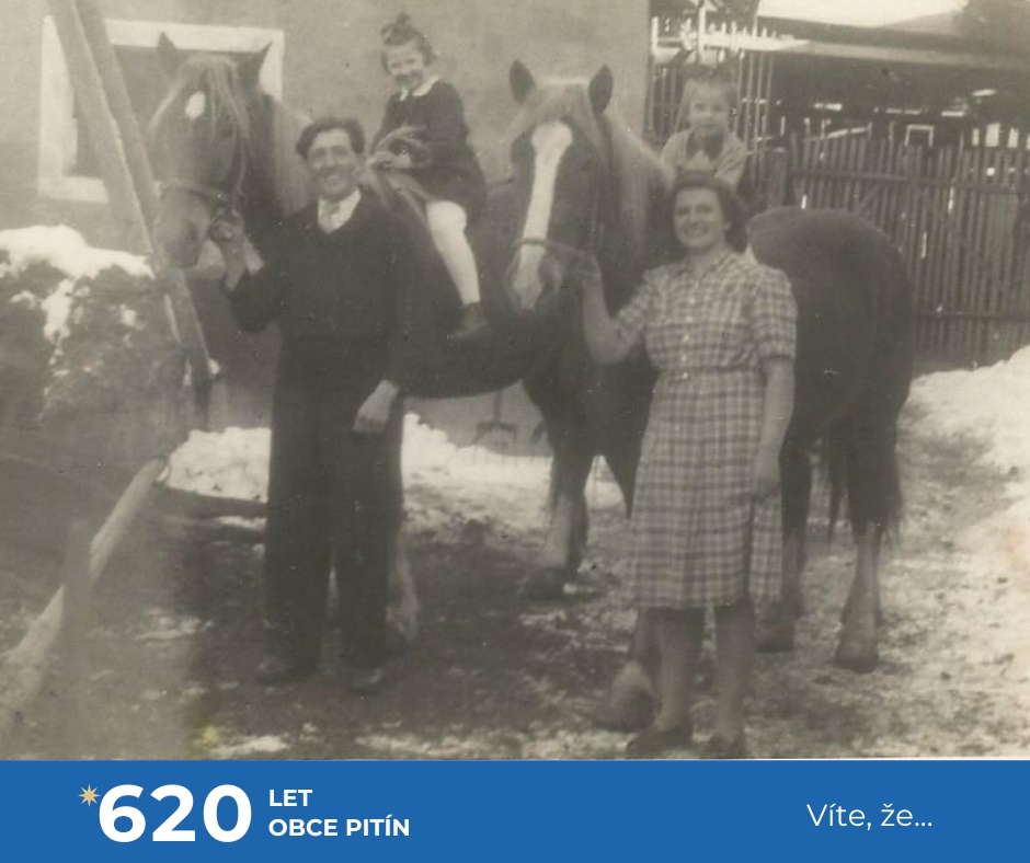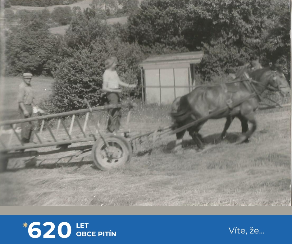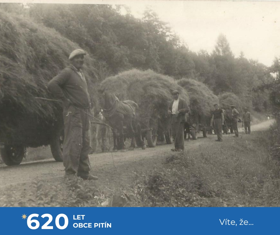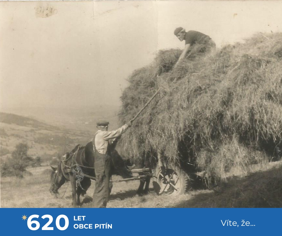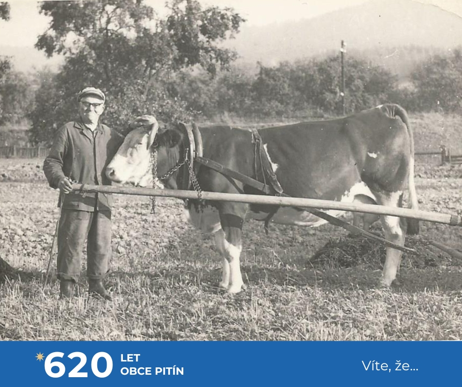a také ještě několik málo soukromých zemědělců. Zejména při senoseči či žních, kdy namáhavá lidská práce a koňská síla byly v zemědělství a lesnictví jen pomalu nahrazovány výkonnou technikou. Ta však už není k půdě tak šetrná jako zvířata. A kdo neměl koně, zapřáhnul do vozu nebo za pluh kravku či volky. Mimo práce na poli třeba i při zakládání nového Pitínského hřbitova v roce 1960.