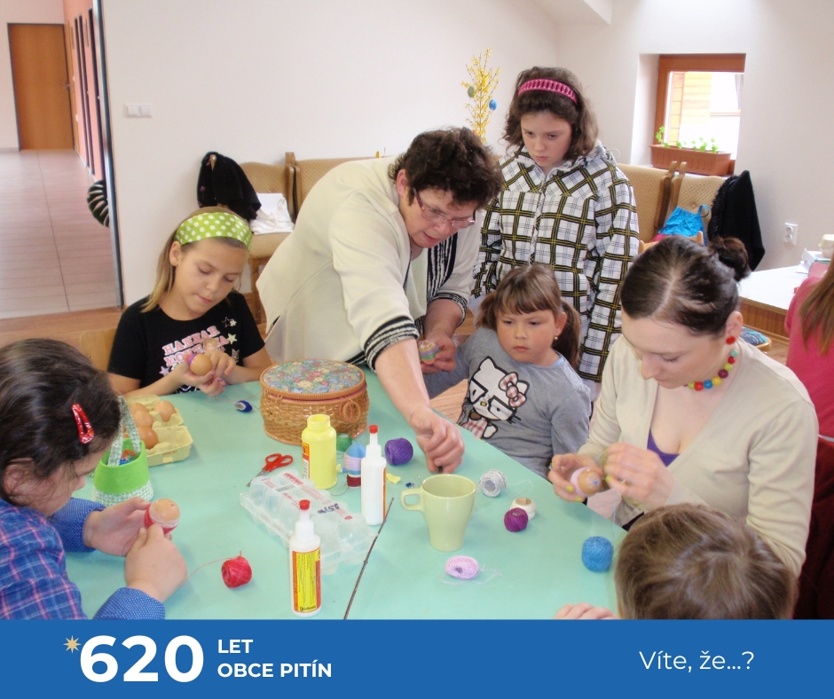 Novodobou tradicí se v naší obci staly také „Velikonoční dílničky“, které každoročně připravují členové Jednoty Orla Pitín. Tvořivé dílničky se konají v zasedací místností obecního úřadu a děti se tam mohou naučit plést tatary, barvit a zdobit vajíčka či vyrábět různé velikonoční ozdoby. Ty letošní dílničky budou v sobotu 19.4.2025.