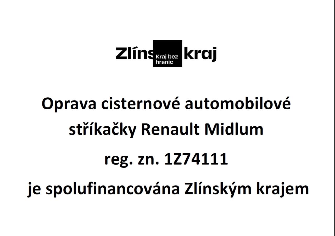 Oprava vadných částí a zajištění provozuschopnosti cisternové automobilové stříkačky pro jednotku SDH Pitín. Projekt je spolufinancován Zlínským krajem.